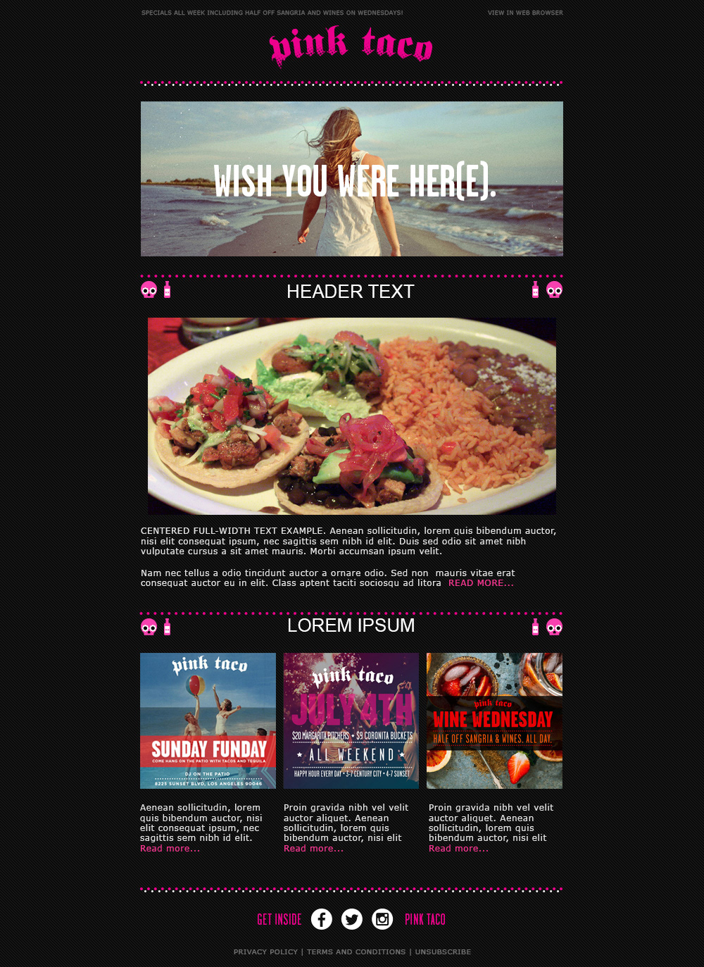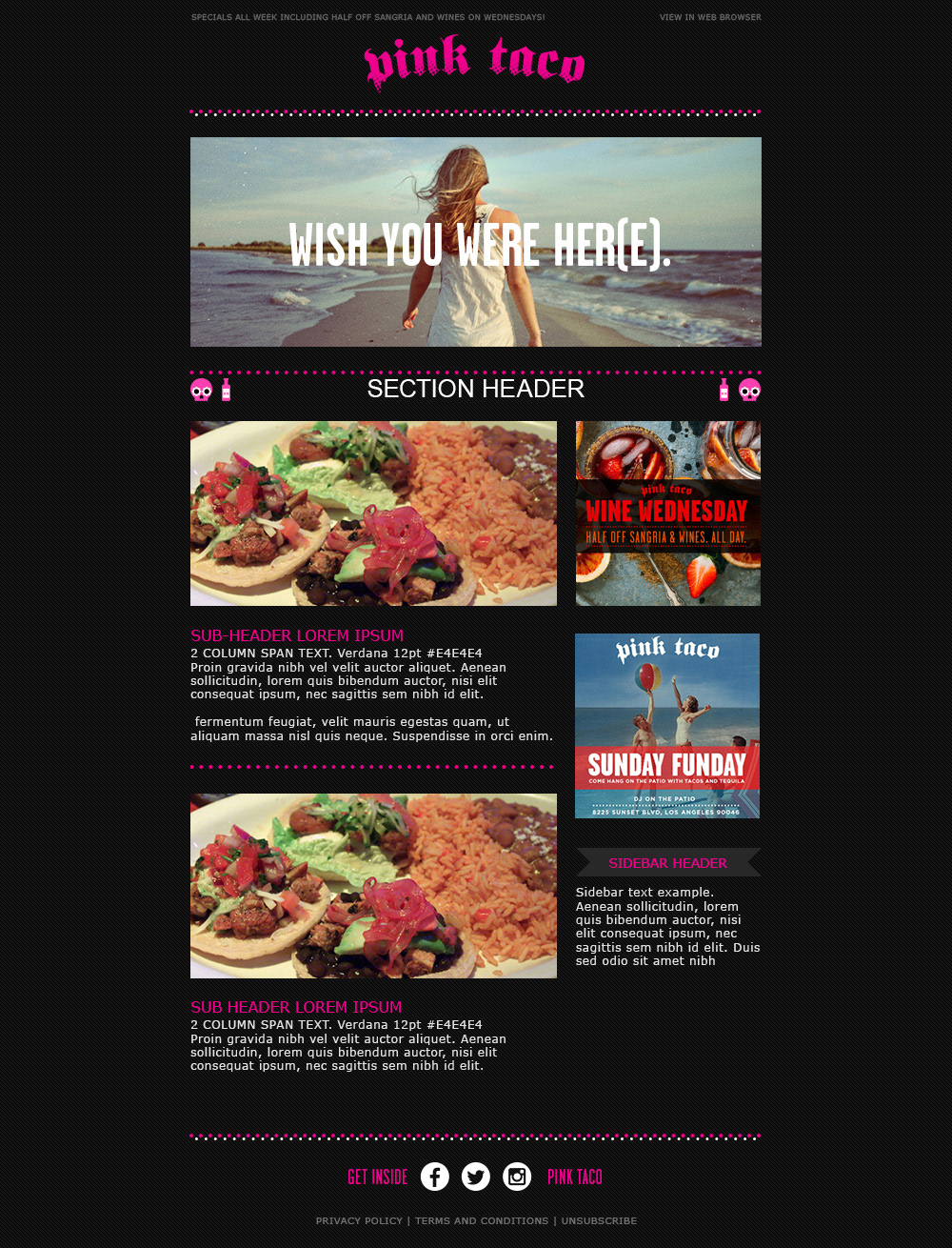 Pink Taco is a modern mexican restaurant located on the Sunset Strip in Los Angeles. I designed loads of collateral for the cheeky establishment including table tents, posters, flyers, and social media content.