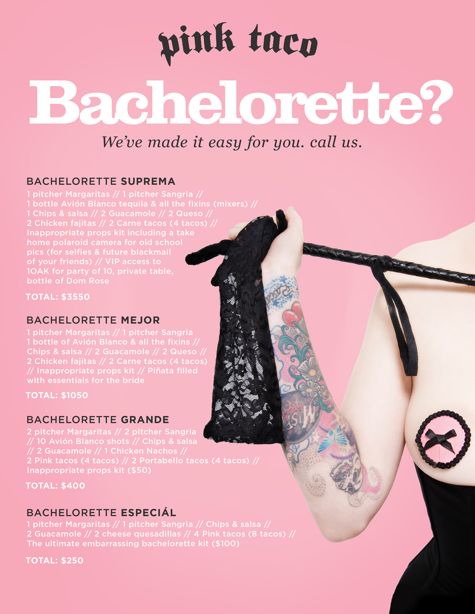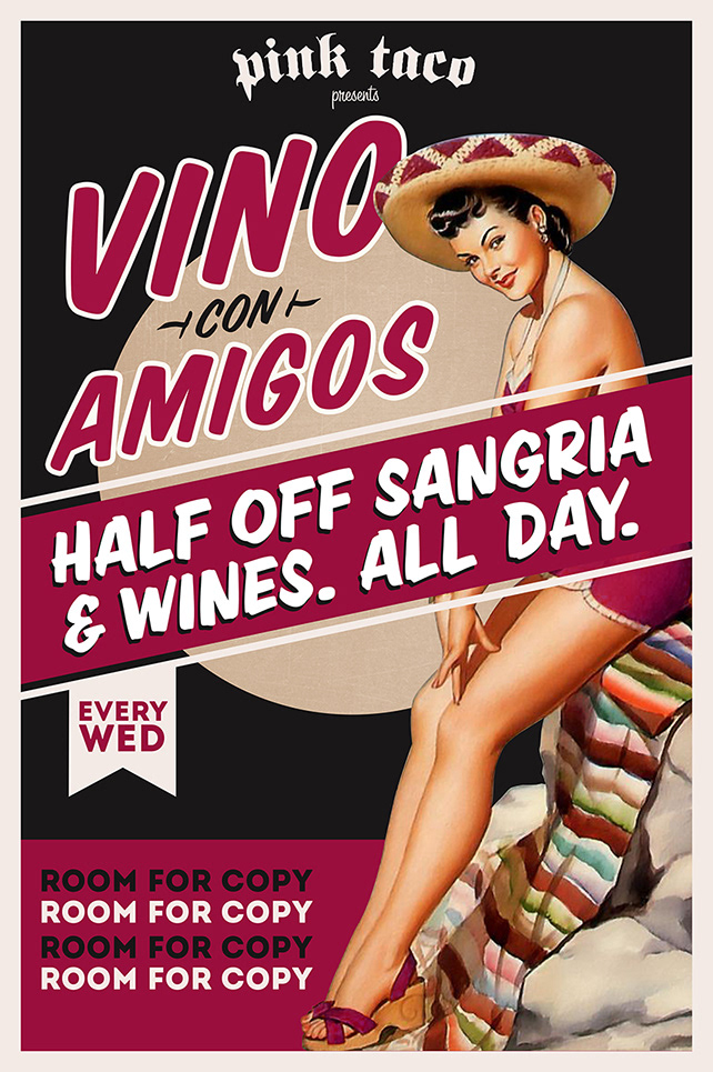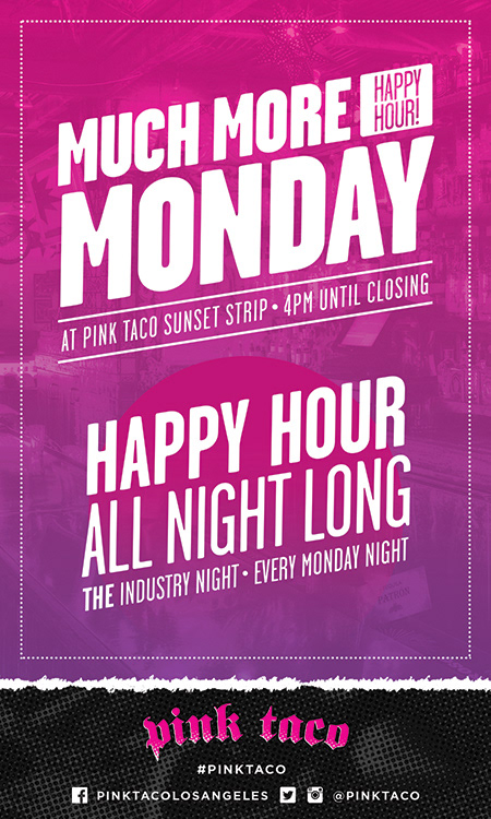 Pink Taco is a modern mexican restaurant located on the Sunset Strip in Los Angeles. I designed loads of collateral for the cheeky establishment including table tents, posters, flyers, and social media content. Here are some samples.